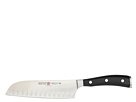 Santoku roughly translates to three good things. This Asian chef's knife is proficient at chopping, slicing and dicing. The hollow ground edge minimizes friction so less food sticks to the blade and less effort is required. The distinctive ergonomic handle of the CLASSIC IKON series gives the knives a flowing aesthetic while providing a comfortable grip. Forged from one piece of specially tempered high carbon stainless steel for exceptional strength. The special steel alloy that comprises the blade assures that it is exceptionally sharp and has a long-lasting, easily restorable edge. The bolster provides heft and balance as well as a finger guard for safety and comfort. Full tang construction from the bolster through the back of the handle for a solid feel and confident control. Riveted synthetic handle is smooth and seamless for a comfortable grip. Attention to details include a ground and polished spine with an etching of the steel formula and trident logo. Carefully hand wash and towel dry. Blade length: 7.0 Blade width: 1.75 Handle length: 5.0 Weight: 6.5 oz. Made in Germany.