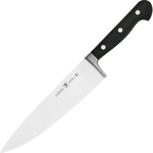 A good chef's knife becomes your daily kitchen companion. It's used for everything from prepping steaks for the grill to finely mincing onions, and chances are you'll reach for it every time you cook--so it better be good. This lower-priced line from Henckels is a great value: excellent quality knives with their standard lifetime warranty. There's good balance, and the handles are a shade heavier than other lines, which some cooks will prefer. The 8-inch blade length is the most practical for multipurpose use, and regular sharpening will keep the stainless-steel blade razor-sharp. It's only minimally flexible, which makes it a great choice for vegetables such as potatoes and turnips. While it's dishwasher-safe, unless it needs sanitizing after use with raw meat, it's often easier to hand wash.